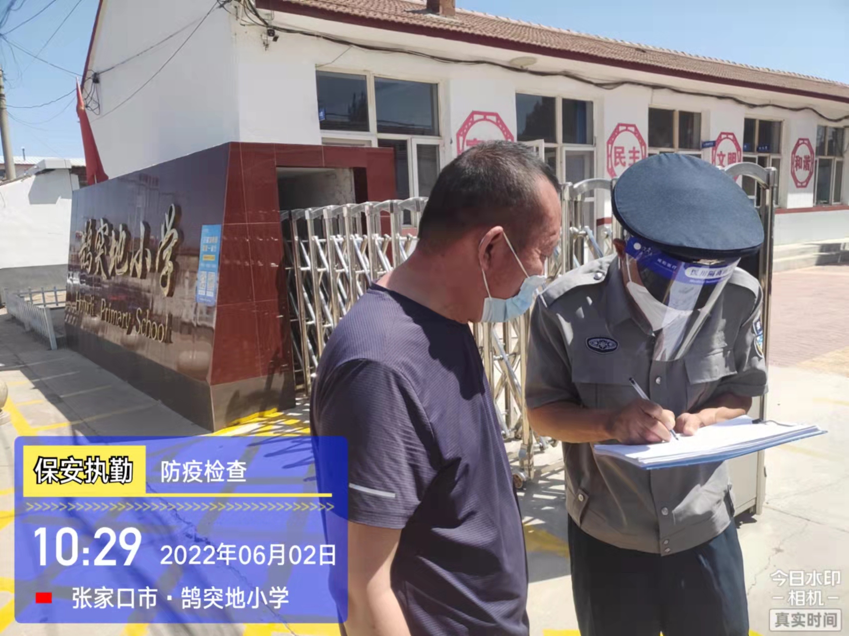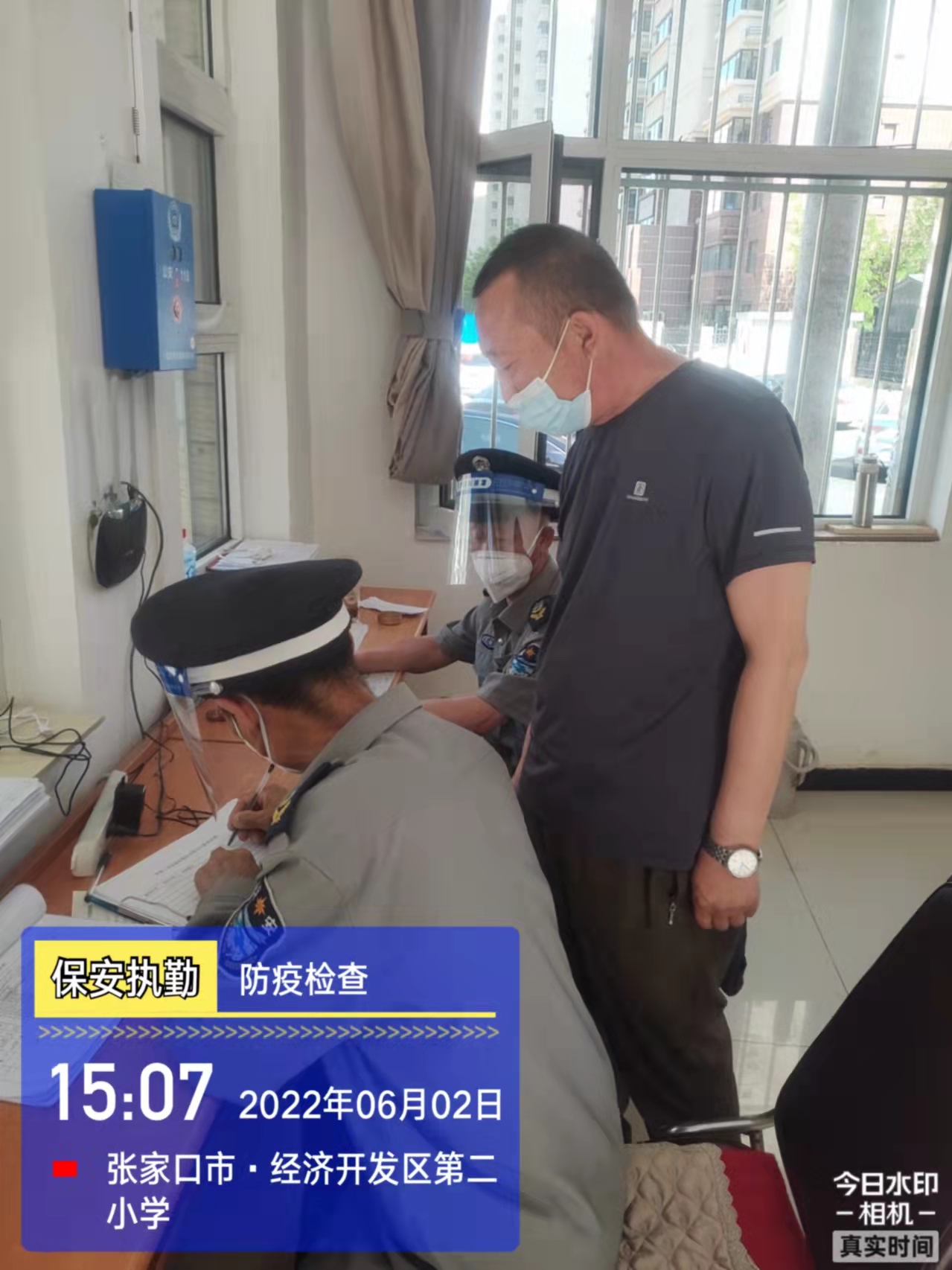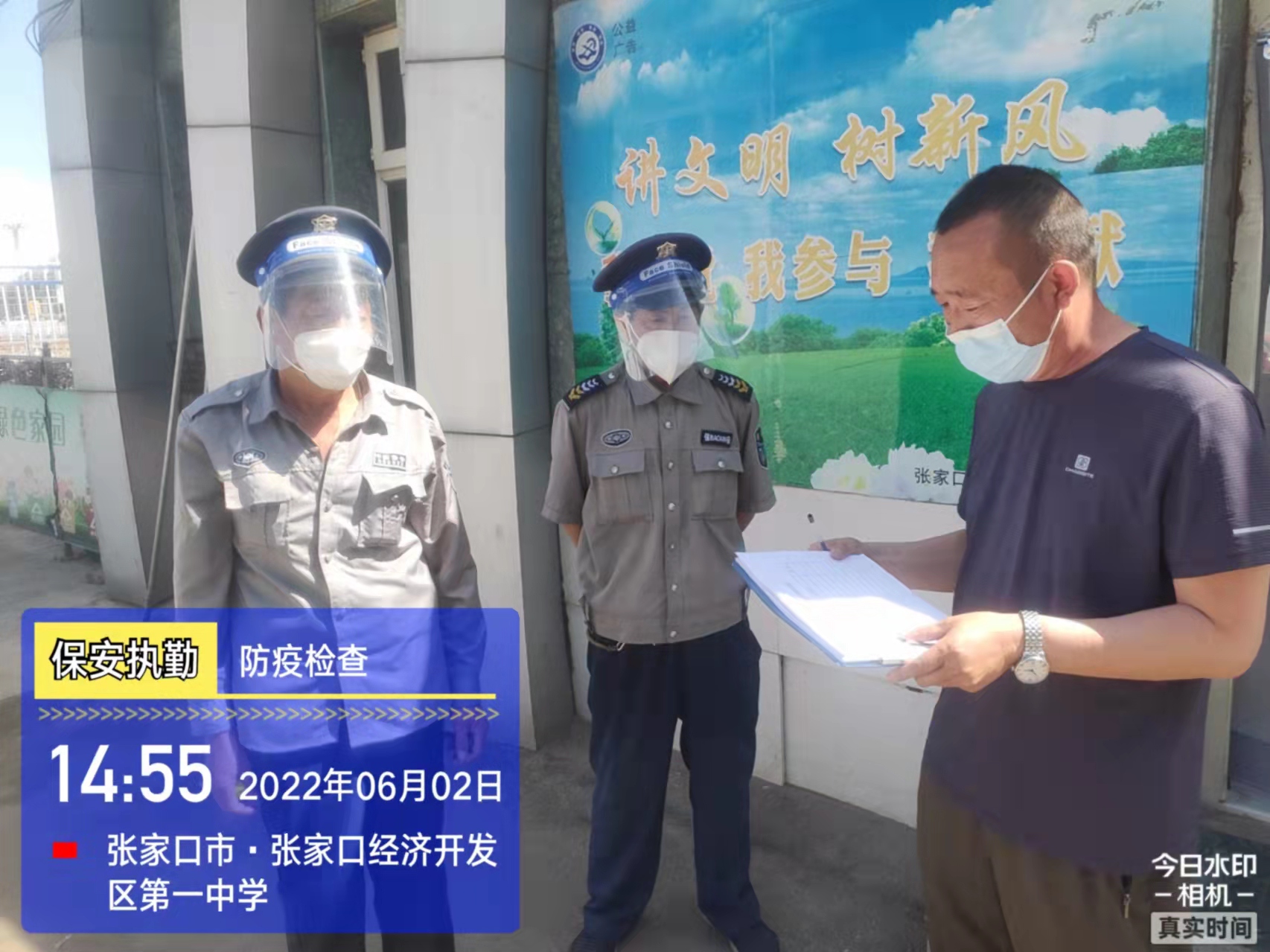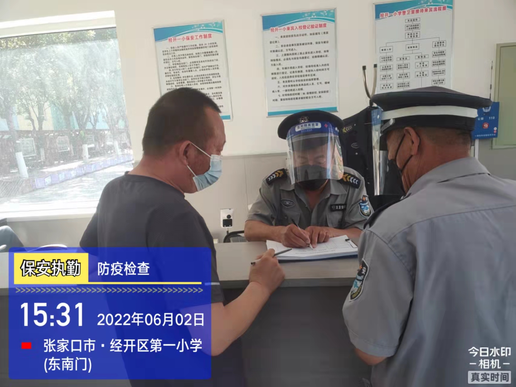 會(huì)后,我公司迅速召開“疫情期間學(xué)校門衛(wèi)安全防控工作要求”的會(huì)議,制定了校園安全防疫規(guī)定:疫情防控期間,校園保安隊(duì)員必須穿制服,規(guī)范佩戴“三件套”(防護(hù)隔離面罩、N95口罩、一次性PVC手套);進(jìn)出校園的師生必須測(cè)量體溫,外來人員需登記、測(cè)溫、掃碼(幸福張家口,呈綠碼)、且持7日內(nèi)核酸陰性檢測(cè)結(jié)果;保安室需保持干凈整潔,物品擺放有序,勤開窗通風(fēng),定期噴灑消毒藥水。為此,公司特成立校園防疫檢查小組,由副經(jīng)理帶隊(duì),協(xié)同主管大隊(duì)長對(duì)經(jīng)開區(qū)所有中小學(xué)校安保崗位進(jìn)行防疫工作檢查,檢查期間,發(fā)現(xiàn)問題,現(xiàn)場(chǎng)處理,并及時(shí)與校方領(lǐng)導(dǎo)溝通,杜絕同樣問題再次出現(xiàn),確保校園防疫安保工作萬無一失,為各校師生鑄就一道安全防線!